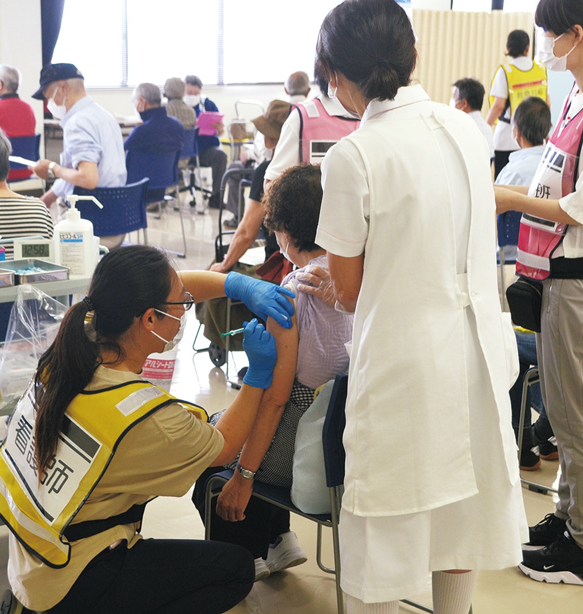 受付が始まると、対象者は4階の会場へ。時間短縮と身体への負担軽減のため、着席した状態で医師による問診・接種・15分の経過観察を受けた。市によると、これまで大きなトラブルや体調不良はなく、今後も混乱を避けるため、予約時間どおりの来場を呼びかけている。