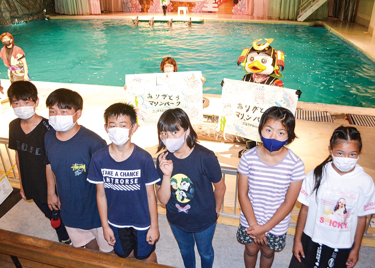 名向小学校(中山賢一校長)の全校児童が先月24日、9月末で閉館になる京急油壺マリンパーク(以下、マリンパーク)を訪問。これまでの感謝を伝える寄せ書きを贈った。