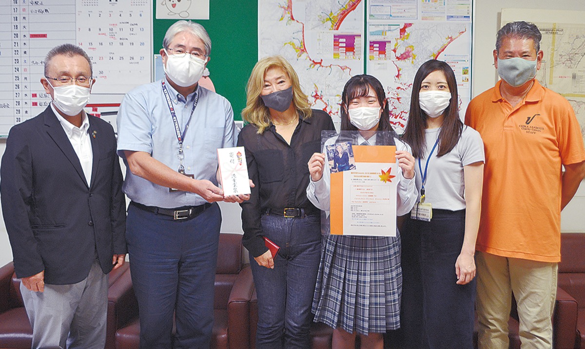 港音楽祭実行委員会は10月11日、南下浦中学校吹奏楽部に対し、チャリティーコンサートの収益5万円を活動支援金として寄付した。