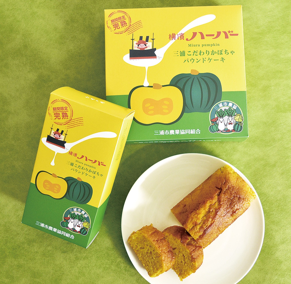 三浦市農業協同組合は、特産の「三浦こだわりかぼちゃ」を使った「三浦こだわりかぼちゃパウンドケーキ」を、(株)ありあけ(横浜市)と共同開発。かぼちゃペーストをふんだんに生地に練り込んだ、素朴で優しい甘さのパウンドケーキを今日12月3日から限定販売している。