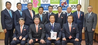 「ライオンズクラブ国際協会330―B地区」から市内3中学校に折り畳みテント(3・6m×7・2m)が贈られた。5月11日には、同地区の亀井真司ガバナーや「三浦ライオンズクラブ」の石渡敏昭会長、会員らが市役所を訪れ、吉田英男市長に目録を手渡した。