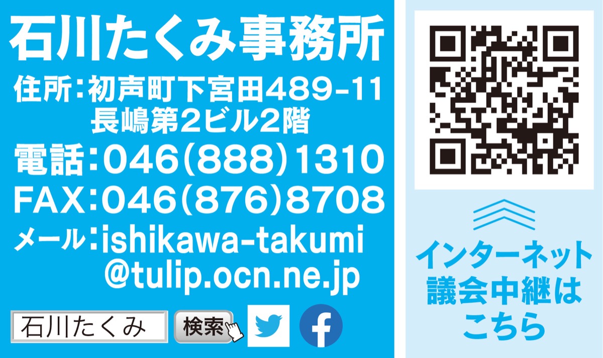 神奈川県議会第3回定例会が9月7日(水)に開会しました。14日(水)には、私、石川たくみが初となる代表質問を行います。