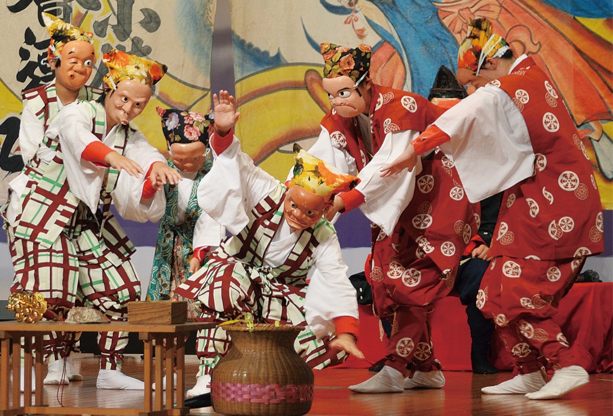 本番では、「国がため」「湯立」「天狐の舞」「恵比寿の舞」の4演目を実施。滑稽な動きに会場は笑いと拍手に包まれた。
