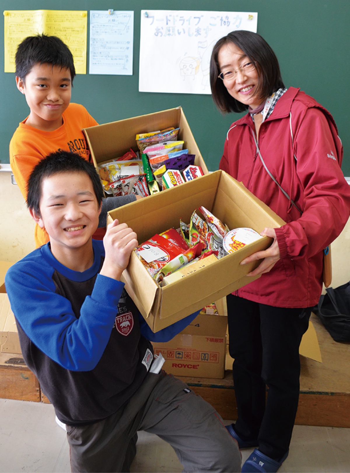 児童たちは「もったいないンジャー!わたしたちにできること」を合言葉に、日本では1人1日茶碗1杯分の食物が捨てられ、ごみ処理に多くのエネルギーを使うため地球温暖化の原因になっていることなどを知った。その後、フードドライブを呼び掛ける手書きのチラシやポスターを作成。学区内のスーパーなどに掲示させてもらうと、缶詰や麺類など約130品目の食品が集まった。
