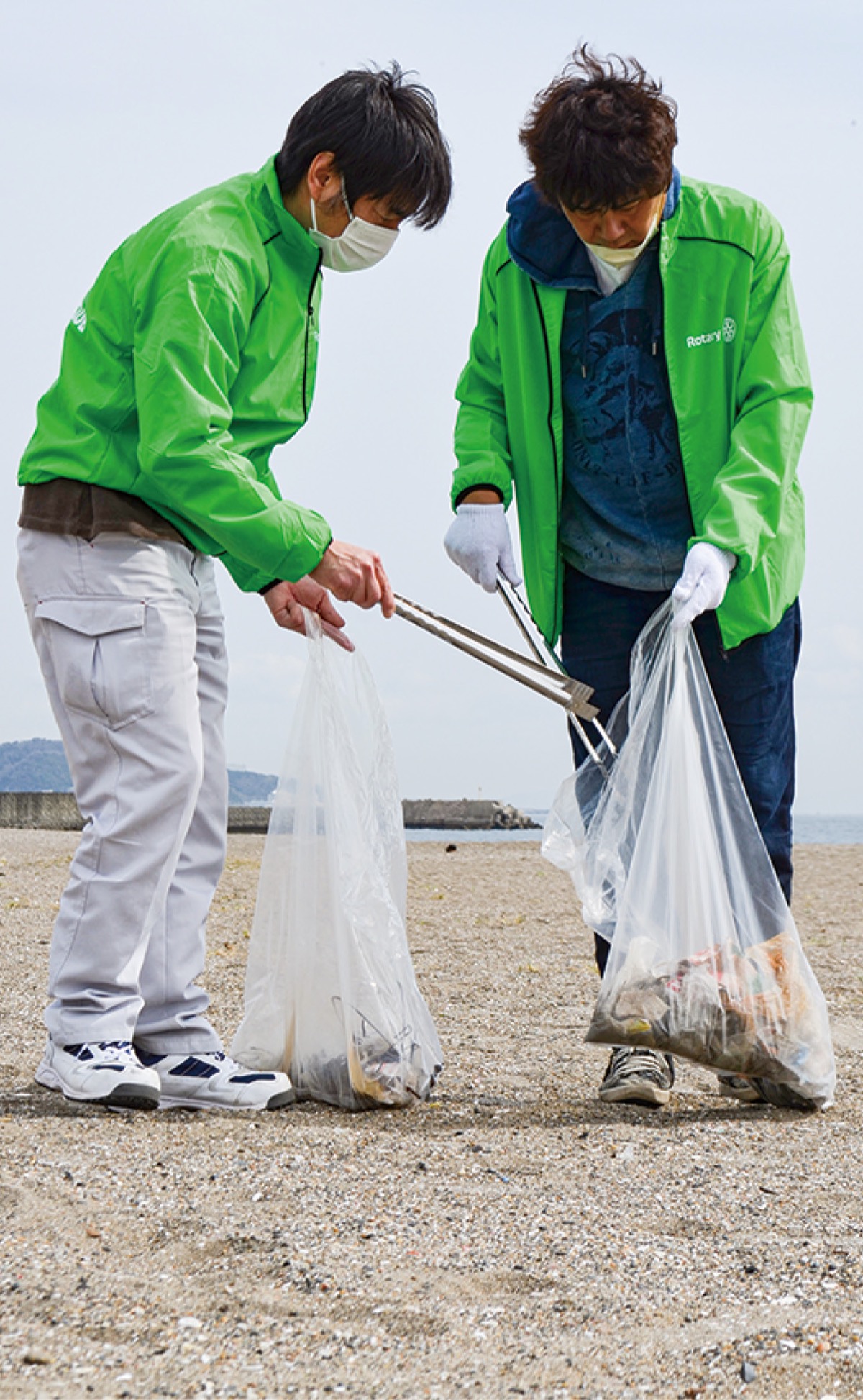 奉仕団体「三浦ロータリークラブ」(奥山浩司会長)は3月12日、三浦海岸で一斉清掃を実施した。会員に加え、近隣の小学校などに参加を呼び掛け、児童と保護者を合わせて約120人で砂浜の美化に汗を流した。