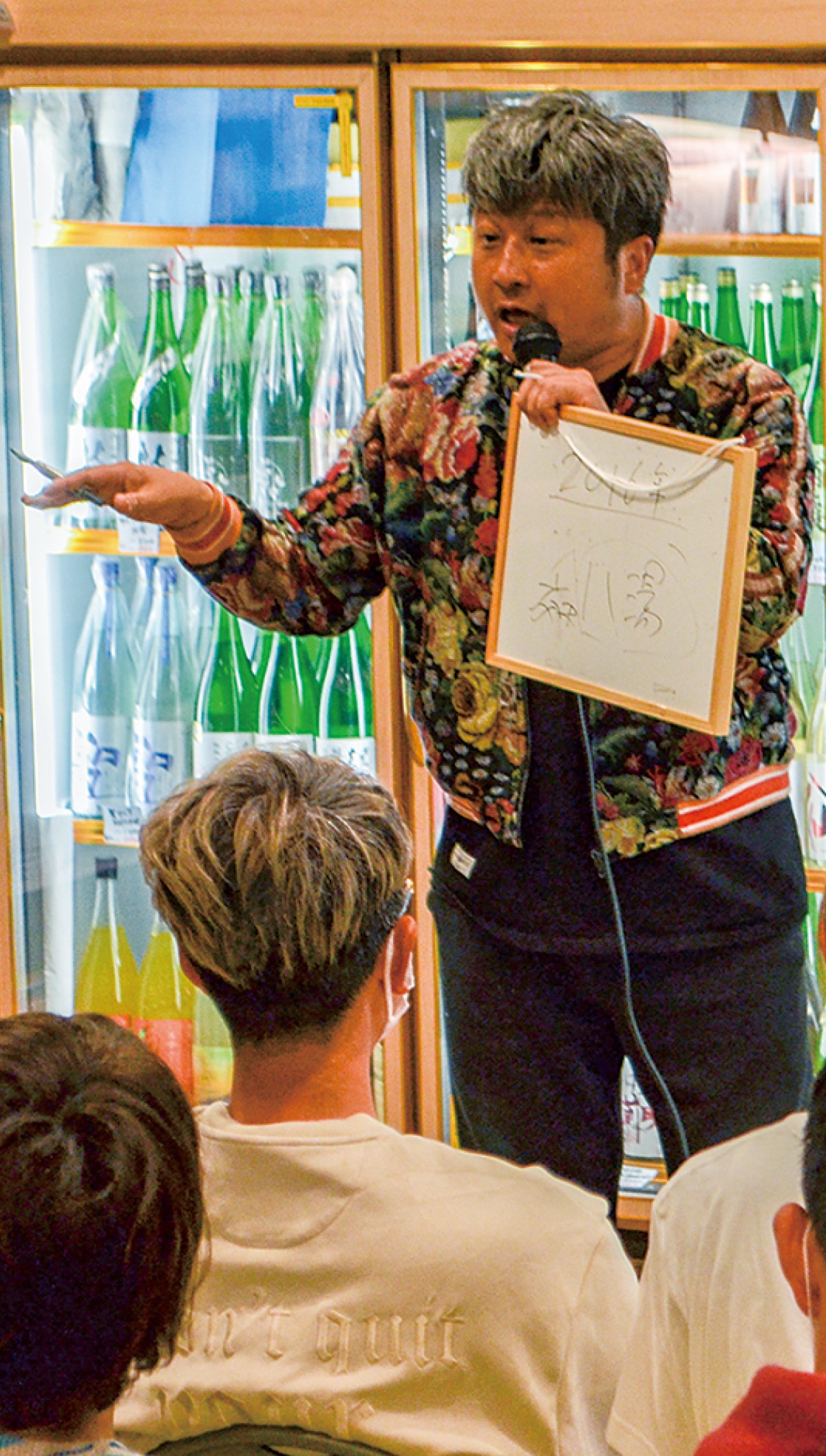 お笑いコンビ「ダイノジ」の大谷ノブ彦さんが4月9日、ねもと長嶋米酒店(上宮田)で独演会と交流会を行った。