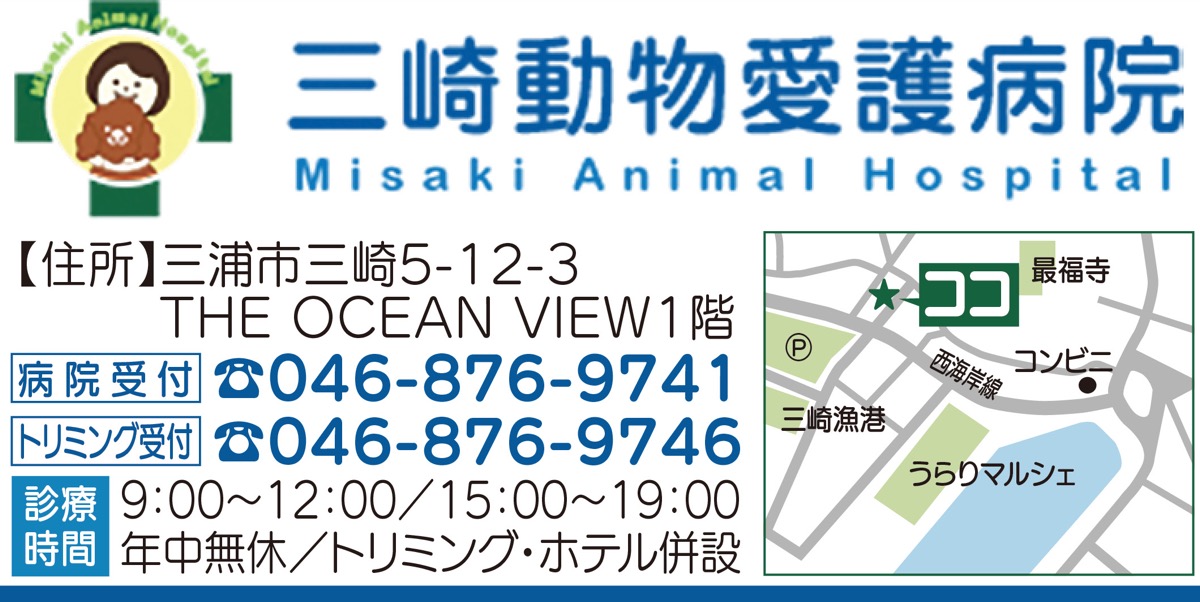 「三崎動物愛護病院」では現在、狂犬病予防接種とノミ・ダニ予防薬のフィラリアを受付中だ。