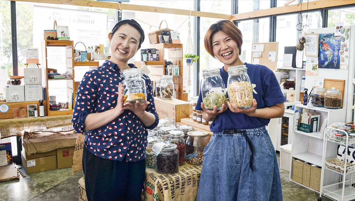 昨年3月にオープンした実店舗(エコルシェ)では「約1年経ち、量り売りという文化が少しずつ浸透してきたと思う」と代表社員の神馬彩夏さんと鈴木彩子さん。三浦半島地域の生産者とつながり、地元で環境の取り組みに関わる中で、「誰もがポジティブに環境問題に触れられる機会を増やしたい」という思いがさらに強まったという。