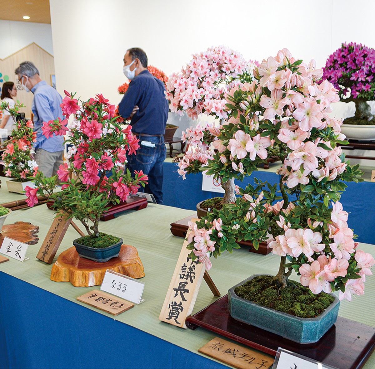 春は花を、秋は木型を愛でるため、年2回催される同展。花の色や付き方、幹の太さ、苔、鉢とのバランスなどが評価され、各賞が与えられる。