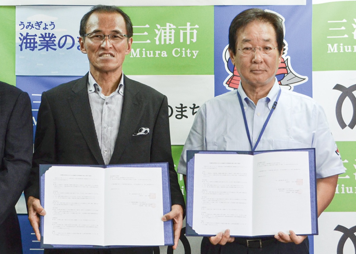 三浦半島で建設業などを営む企業で組織する(一社)三浦半島建物改修工事業協会は8月25日、三浦市と「大規模災害時等における公共施設の応急措置等の協力に関する協定」を締結した。
