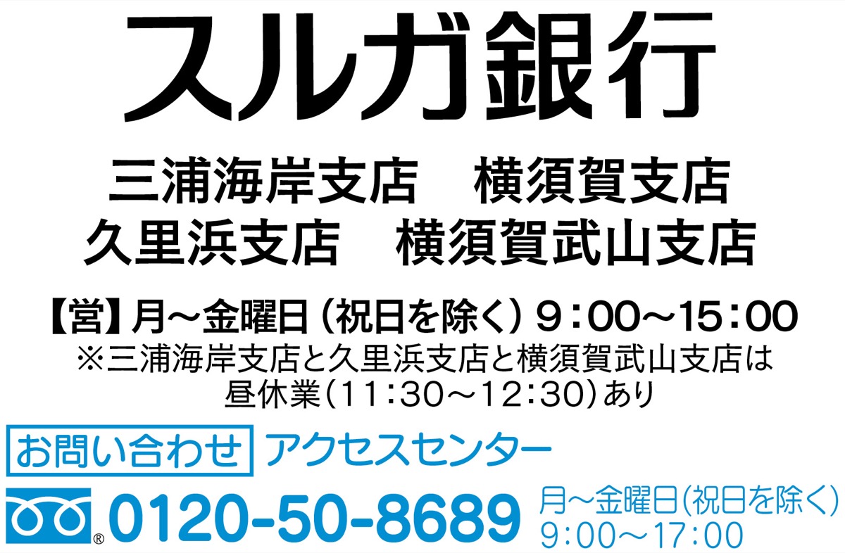 三浦海岸支店…三浦市南下浦町上宮田3112-5 横須賀支店…横須賀市若松町2-5-8 久里浜支店…横須賀市久里浜5-11-22 横須賀武山支店…横須賀市林1-21-5
