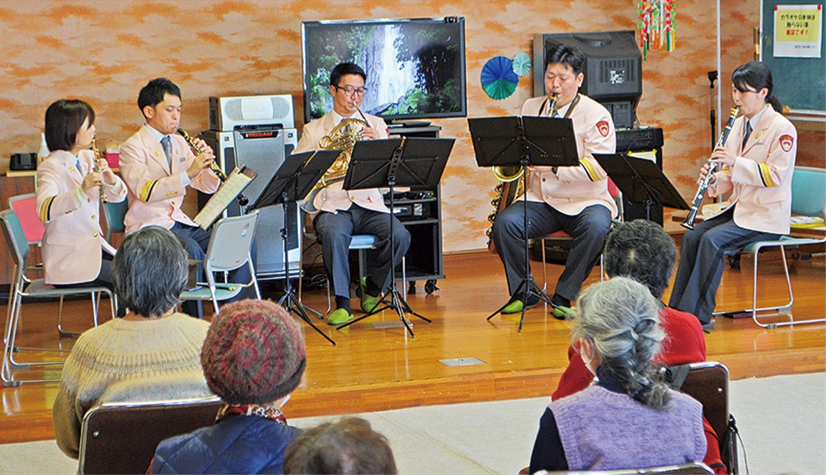 三崎署は月に一度、三浦市老人福祉保健センターで高齢者を対象にした交通安全教室を行っている。これに加えて2月9日には、県警音楽隊による演奏会も開かれ、約40人が参加した。