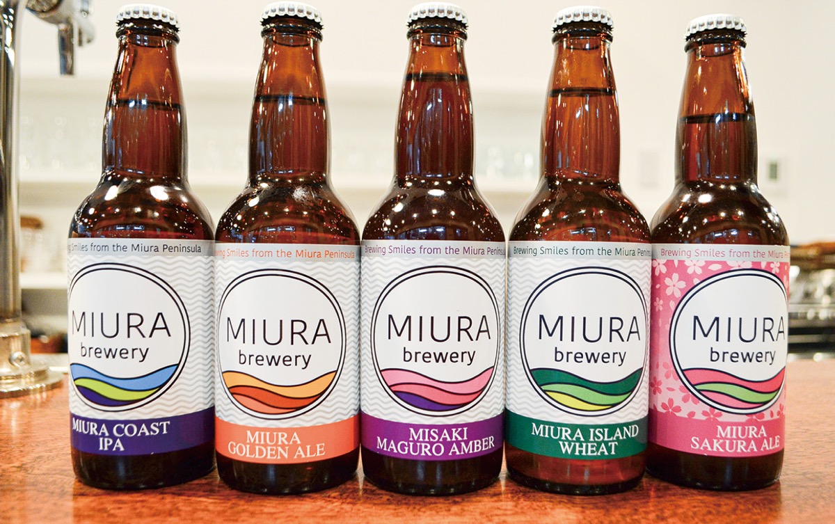 油壺から望む富士山、美しい海岸線が伸びる三浦海岸、レトロなまち並みの三崎、雄大なパノラマが広がる城ヶ島――。異なる魅力が詰まった三浦の情景をビールで表現。定番4種のほか、メロンやスイカといった季節感のある果汁、今は「三浦海岸桜まつり」に合わせ、塩漬けにした桜の葉をフレーバーに加えるなど新スタイルのビールづくりにも挑戦中だ。