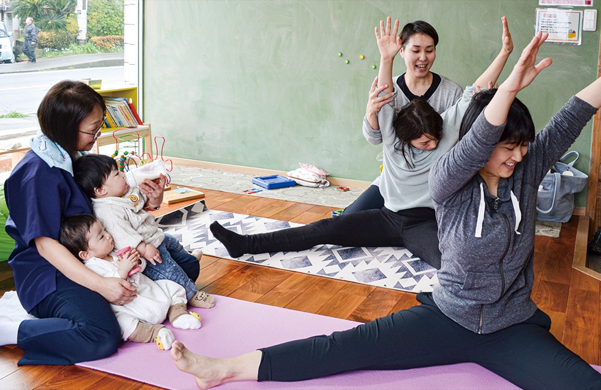 出産前後の母親らを対象とした「マタニティヨガ」が月に一度、三崎口駅近くにある「mito cafe」内のキッズルームで行われている。同室には、三浦市子ども課非常勤職員で助産師の冨宅(ふけ)真理子さんもおり、赤ちゃんを預けたり、相談をできたりする心身を気遣うサービスが、利用者に好評を博している。
