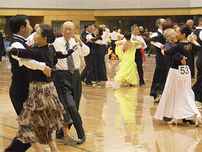 クイック、スロウ、エンドターン―。逗子アリーナ1階のメインアリーナで20日、逗子市ダンススポーツ協会(川上征子会長)主催の「逗子市民大会ダンスパーティー」が行われた。ダンスの普及や愛好家の親睦を図ろうと毎年行われている催しで今回が3回目。
