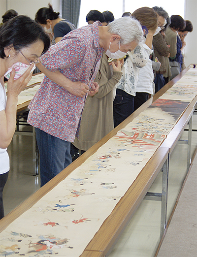 模写の閲覧が始まると、講座に参加した65人の参加者は列を作り、当時の様子を伺わせる精巧な模写を堪能。参加者のひとりは「こうしたものを直に見れる機会は滅多にない。素晴らしい」と感嘆をもらしていた。