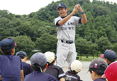 葉山町唯一の少年野球チーム「葉山巨人軍」の総監督で元読売巨人軍の宮本和知さんがこのほど同町長柄の南郷上ノ山グラウンドで小学生を対象にした野球教室を行った。