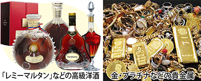 また貴金属以外の買取品目も豊富。ブランドバッグや高級時計、ブランデーやウィスキーなど高級洋酒の買取も力を入れており、記念切手や古銭なども受付けている。まずはご相談を。