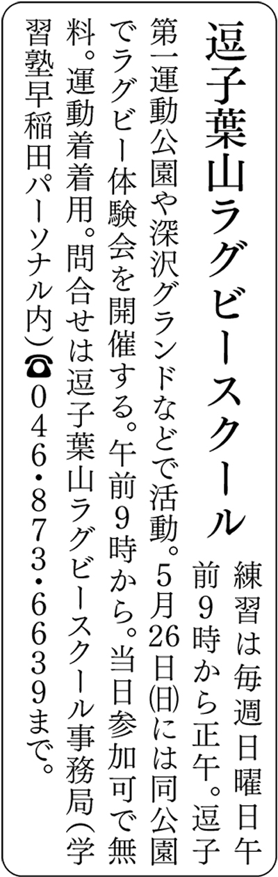 逗子葉山唯一のラグビースクール