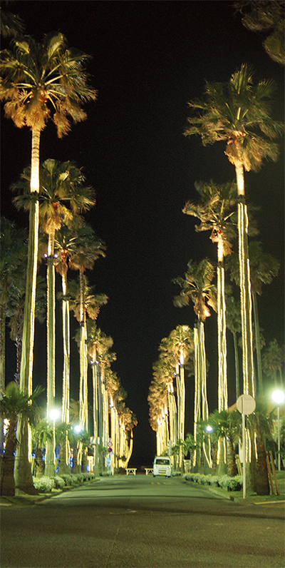 点灯は今年6回目。結婚式場にほど近い道に植栽されたヤシの木や広場、建物などにおよそ30万個のLED電飾が飾られている。装飾は海が目の前にある施設ということにちなみ、「魚や波のある海」をイメージしているという。「リゾート地ならではのイルミネーションを楽しんでいただければ」と同社広報部では話している。点灯時間は日没から午後10時ごろ。期間は来年3月ごろまでを予定している。