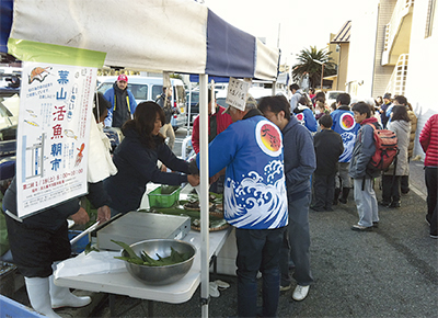 葉山町漁業協同組合に所属する漁師の有志が7日、同町堀内の真名瀬漁港そばの路上で「葉山いきいき活魚朝市」を初開催した。「葉山で獲れた魚を地元の人に食べてもらいたい」と若手女性漁師の畠山晶(あきら)さん(28)らが企画。獲れたての魚介を求める多くの買い物客で賑わい、好調なスタートとなった。