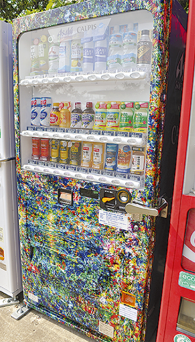 披露山公園の一角に一風変わったデザインの自動販売機がお目見えした。青や黄、白など鮮やかな色彩が何とも芸術的な雰囲気を醸しており、来園者らの目を引き付けている。