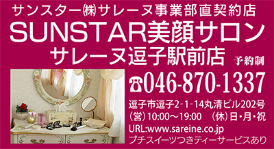 「今までに無い体験です」。そう話すのは、美顔サロン「サンスターサレーヌ逗子駅前店」常連客のKさん。「目元や口元のたるみがすっきり。シワやシミの目立ち方にも変化がありました。強い紫外線でシミだらけにならないのもここのおかげ」
