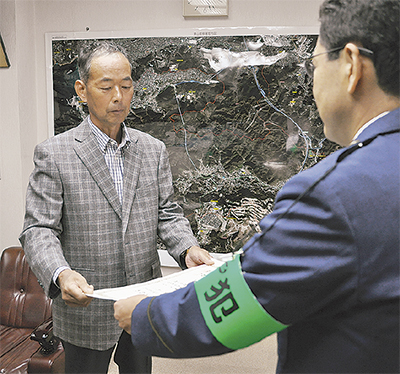 農業を営む石井さん。かねてから消防団など地域活動に積極的で、周囲から推されて防犯活動にも参加。長年にわたって防犯パトロールや子どもの見守り活動などに励んできた。伝達式で泉山署長は「町で犯罪が少ないのも、石井さんのように地道な活動を続けてくれる方がいてこそ」と労い、石井さんは「今後も活動を続けていきたい」と話した。
