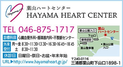 受診は月・火・木曜日の午前10時から11時までに外来で申込む(要予約)。検査時間の目安は3時間。検査内容や料金など詳しくはホームページ(「葉山ハートセンター」で検索)を参照。問合せは左記、同センターまで。