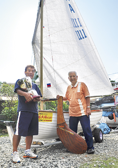 今回使用した艇は山路さんの所有で、舵は60年前初めて購入した当時のものだ。「本当は山路さんをレースで表彰台に上げたかった。(優勝できて)少しは恩返しができたかな」と平野さん。山路さんは「A級ディンギーで結果を出してくれた。それが一番うれしい」と目を細めていた。