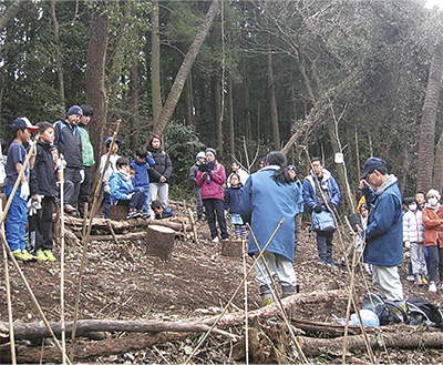葉山町長柄にある標高161mの阿部倉山で2月25日、「阿部倉山の森 保全の会」が桜の植樹を行った。