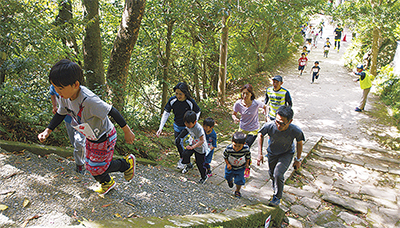 当日は未就学児から小学6年生までと、その保護者約250人が参加。絶好のランニング日和で、参加者たちは神武寺境内やその周辺に設置されたコースを全力で駆け抜けた。