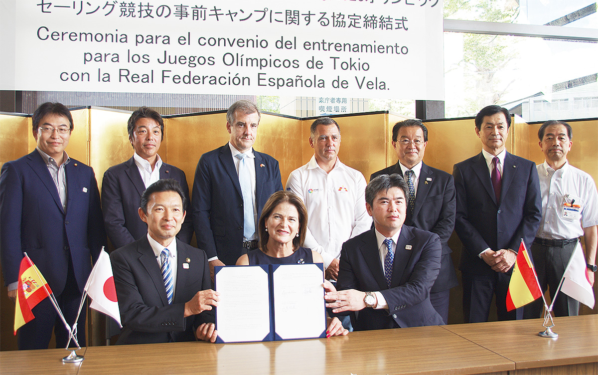 逗子市はこのほど、スペイン王立セーリング連盟と株式会社リビエラの三者で東京五輪事前キャンプに関する協定を締結した。市は同チームへのサポート体制を整えるとともに、交流イベントの開催などで、国際交流や五輪機運醸成につなげたい考え。