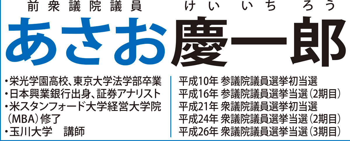 これが今の日本の特効薬になると、私、あさお慶一郎は考えています。