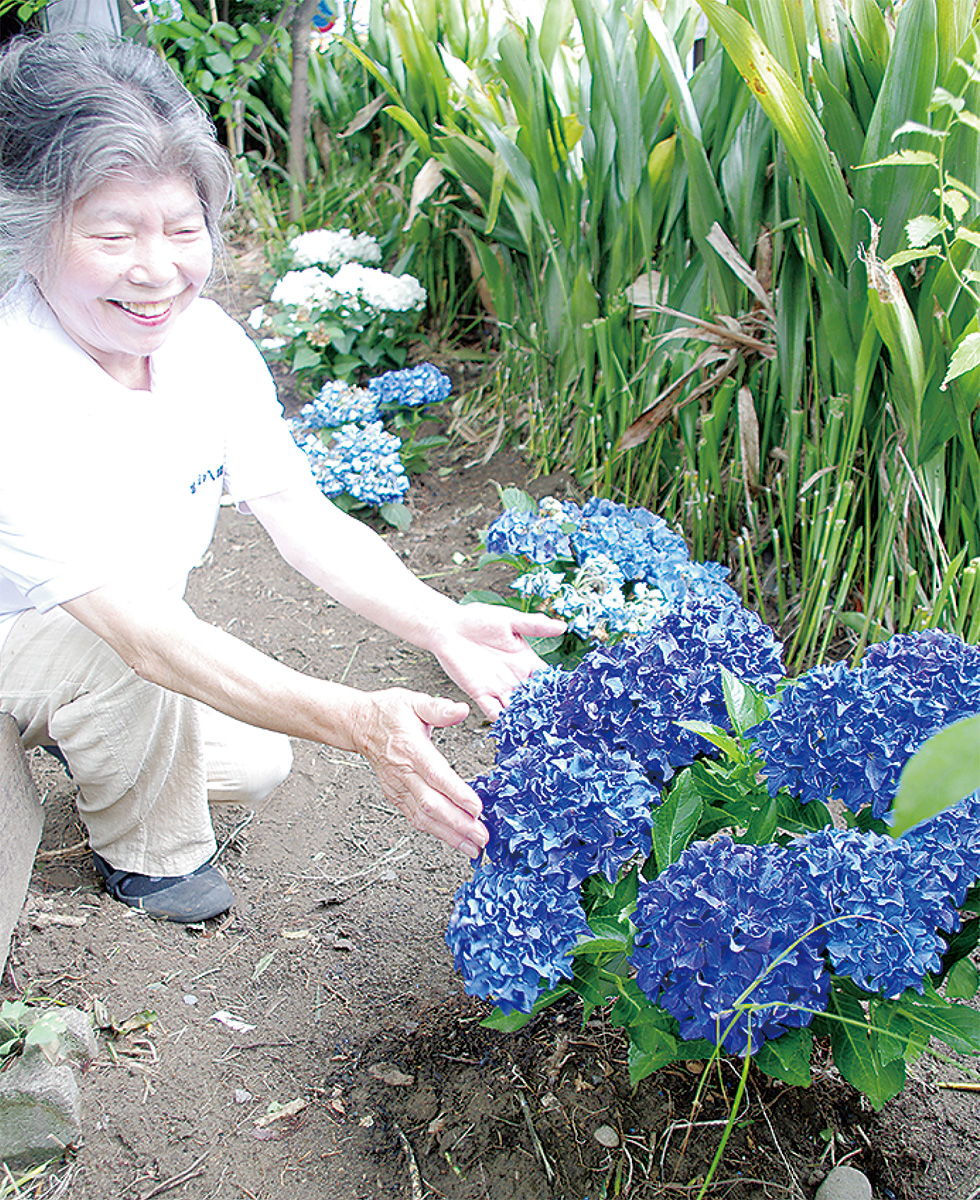 逗子市の亀岡八幡宮にこのほどアジサイが植えられ、参拝者や訪れた人の目を楽しませている。