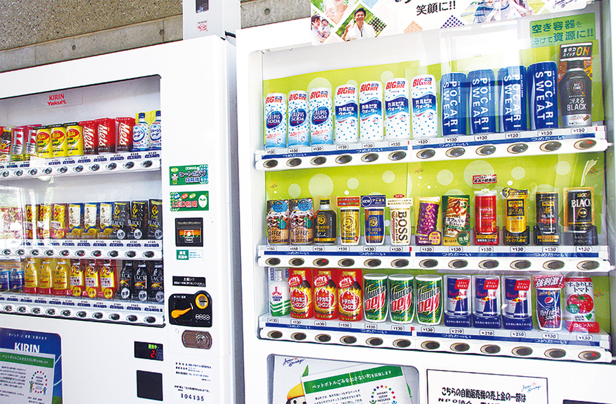 今回、9つの町立施設でペットボトル販売を廃止した=写真右=ほか、職員によるレジ袋持ち込み禁止、マイボトル持参や主催イベントにおける最大限の配慮(ベストプラクティス)を義務付ける。また、町が共催・後援する飲食を伴うイベントについても、会場にペットボトルを持ち込まないなど同様の働きかけを行っていく。