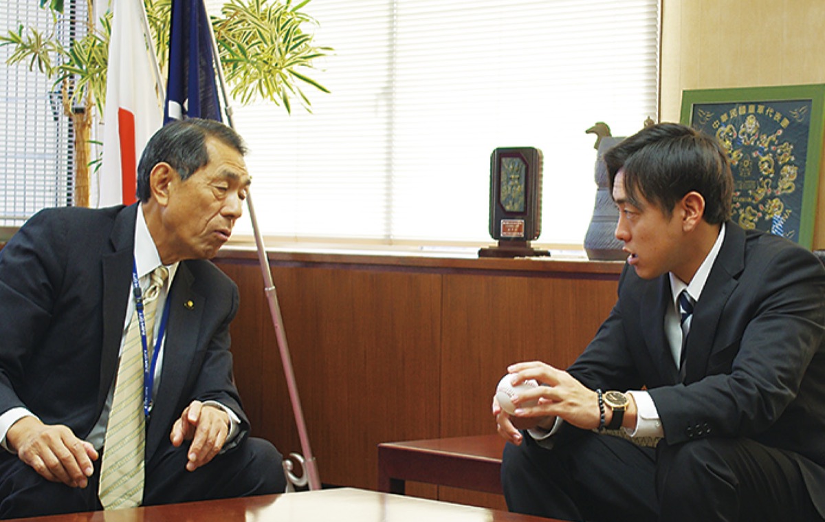 表敬訪問には、逗子オリーブスの酒井博監督と、当時逗子中で野球部を指導した二宮理教諭も同席した。