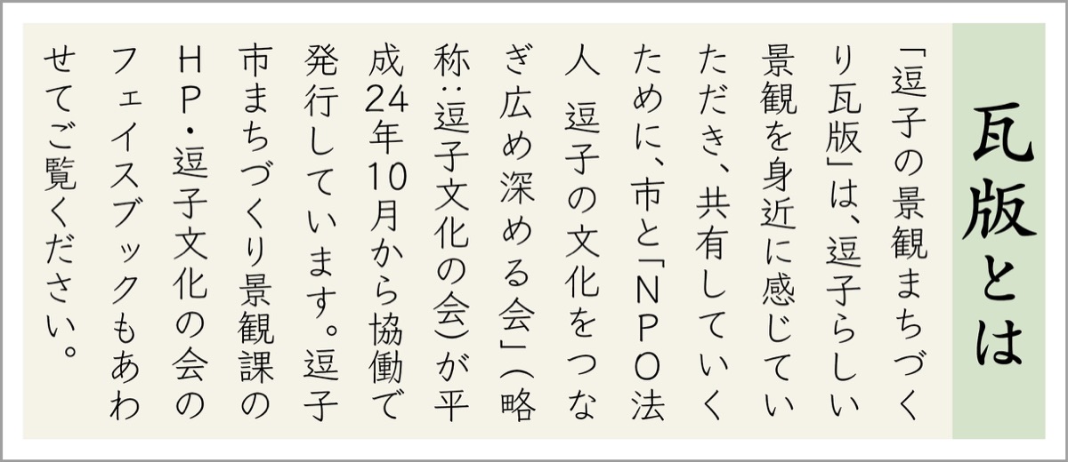 この一年間、瓦版の編集に関わる中で、同じおもいの方々に触れ、逗子は皆さんがそんな意識を共有して心地よい素敵な景観のまちづくりを進めることができるのではないかと希望を感じている。
