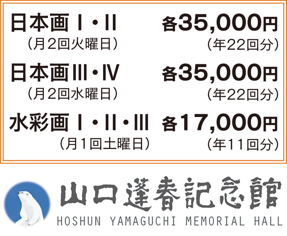 山口春記念館(葉山町一色2320)では、4月から通年の絵画教室が始まる(一部半年)。日本画と水彩画の全7教室があり、経験豊富な現役画家で高校等の美術講師がレベルに応じて指導。上達の秘訣を学ぶことができる。教室は月1〜2回。日本画は初心者クラスから経験に応じた4教室。野外写生を中心に風景を描く水彩画は3教室を用意(水彩画は同一内容)。入会金不要で年度途中の入会も可。見学も随時受付け。