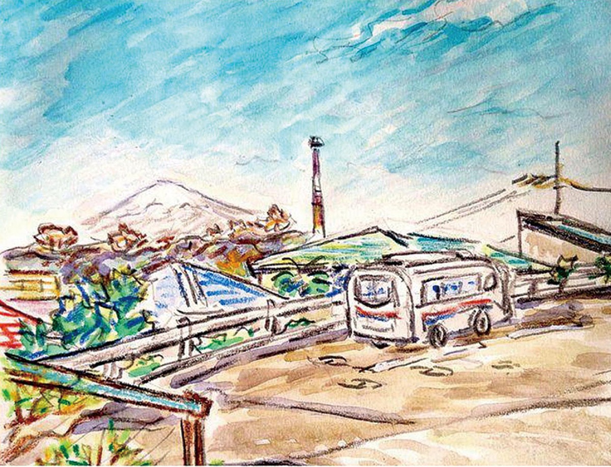アザリエ3期。バス巡回路、一番の奥で下車。山を背にして、アザリエ住宅団地の、給水塔があります。高い石段を登ると、木立越しに、富士山、逗子湾、丹沢の山並み、池子の原生林、アザリエ住宅の全貌を見渡します。
