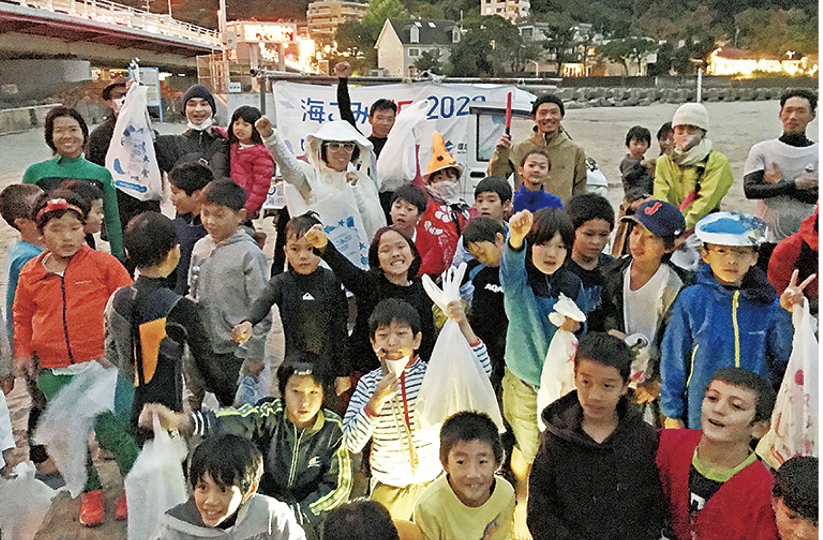 当日は、地域の子どもやその親ら80人以上が参加。東浜を拠点に海岸に落ちているゴミを拾い集めた。終了後には子どもたちにプレゼントの菓子が配られたほか、おもちゃのタツノオトシゴが海を旅するショートムービー「プラスチックの旅人」を鑑賞。身近なプラスチックが捨てられた後の過程について学んだ。