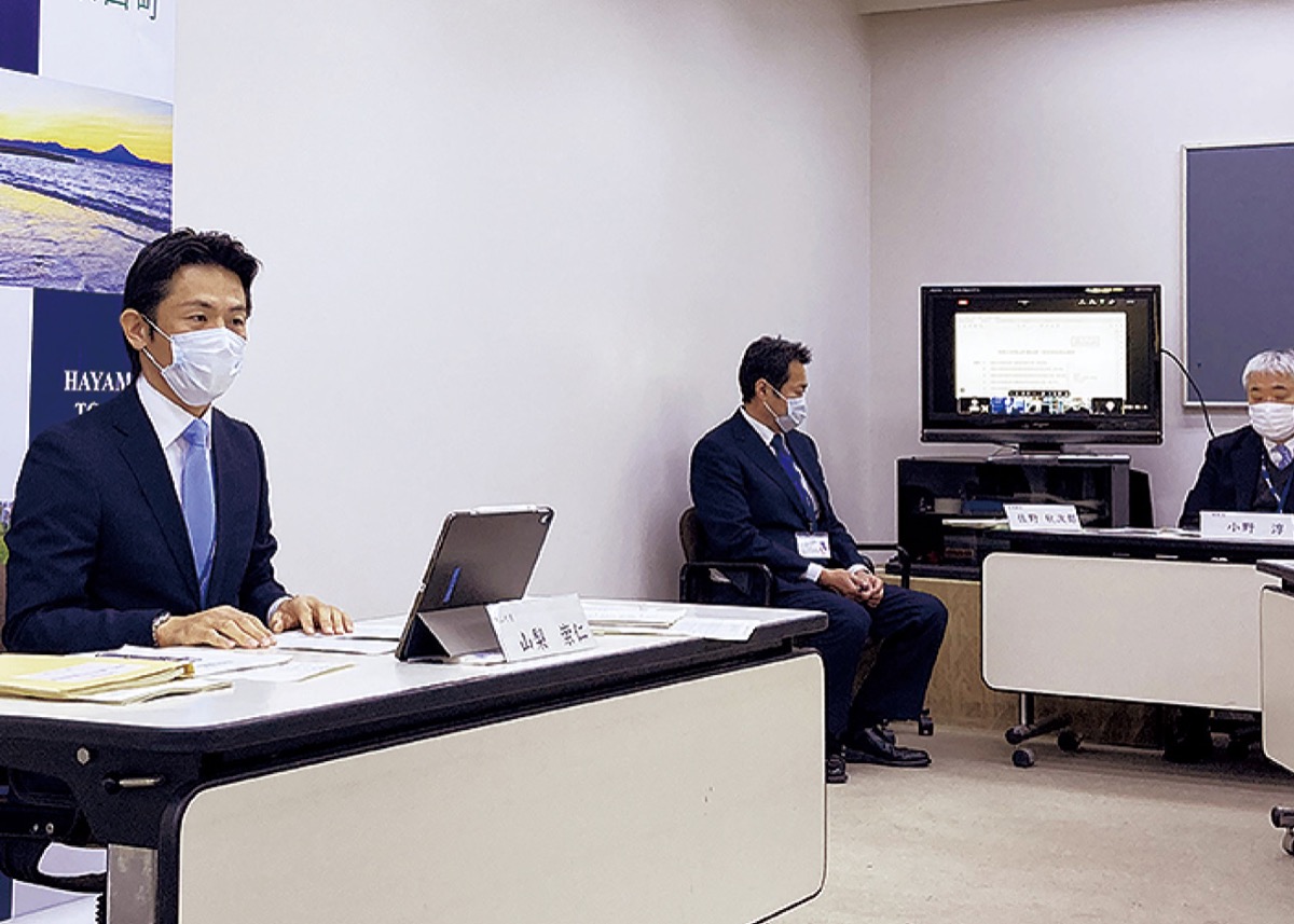 「コロナ対策最優先の予算編成」。山梨崇仁町長がこう語った定例会見は、今回初めてオンラインでも配信され、リモートで参加する記者とのやり取りも行われた。