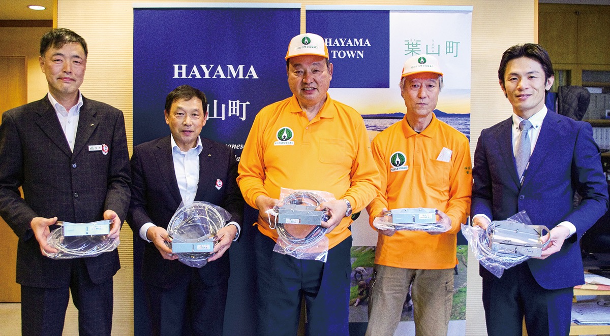 今月2日には寄贈式が行われた。龍崎組合長は「大変な御苦労だと思う。対策に役立てていただけたら」と話し、葉山わな猟の会の石井喜三郎会長は「1度かかった罠は再利用できず、3年ごとに交換するのでありがたい」と語った。