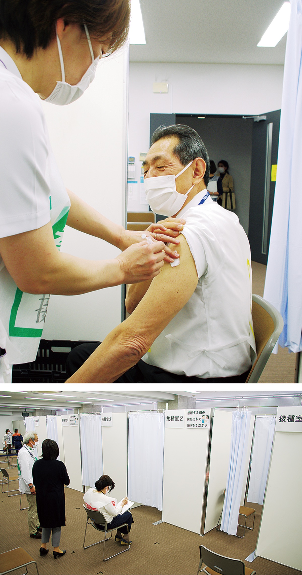 市は1人あたり5分かかると想定している。5つのブースで1時間あたり60人に接種できる計算だ。リハーサルに参加した桐ケ谷市長は「高齢の方は移動に時間がかかるだろうし、付き添いの方もいると思う。問診票の書き方をわかりやすく伝えるなど、見えてきた課題も多いので、対策につなげたい」と話した。