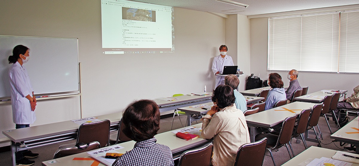 個人に合わせた音楽を聴き、思い出した記憶を参加者同士で話し合うことで、認知症の予防や進行抑制を図るもの。当日は認知症についての基礎知識を学んだ後、参加者それぞれが5歳〜15歳頃に流行した懐かしの歌謡曲や映画のワンシーンを上映。当時の暮らしや思い出を語り合っていた。来月中旬まで講座が開かれ、採取した血液は慈恵医大が評価分析する。