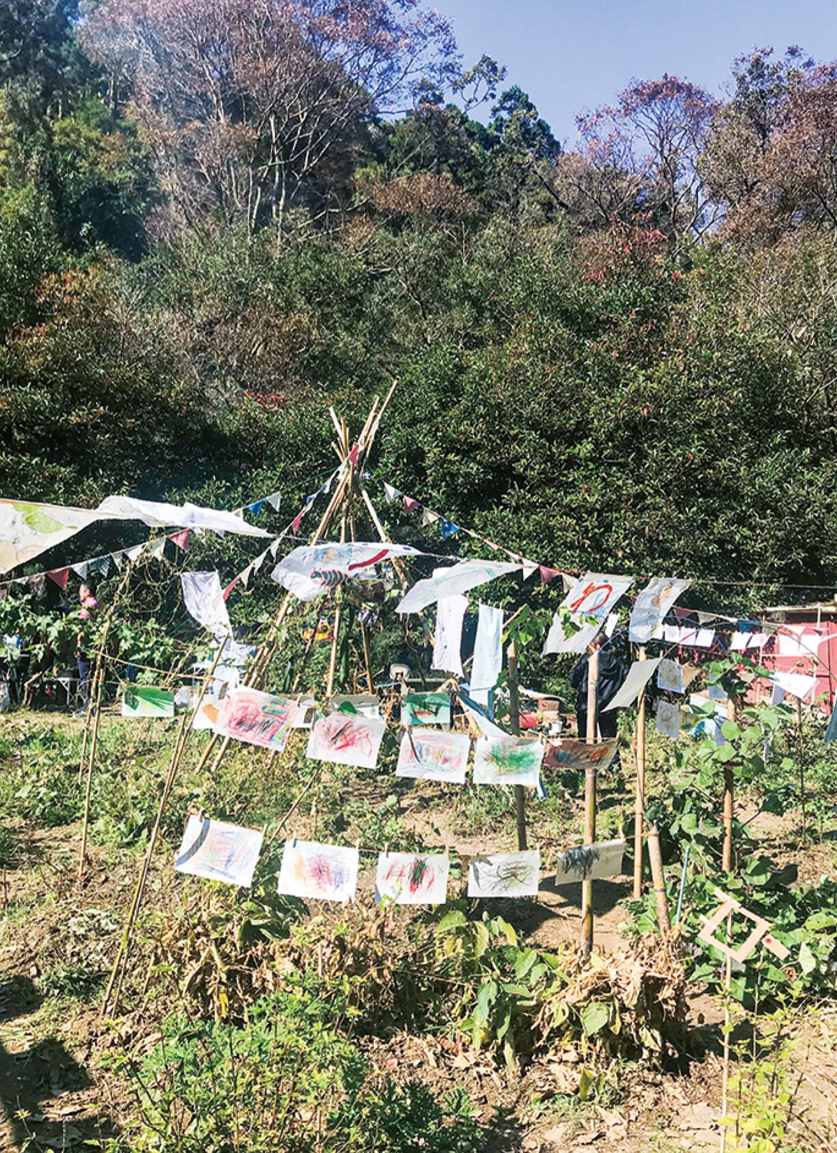 葉山の自然の中で親たちとともに野外保育を行っている「森のようちえん 葉山もりのわ」が展覧会を開催する。7月21日(水)から23日(金)の3日間、午前11時から午後3時まで。会場は森戸川林道入口にある「もりのわ畑」。