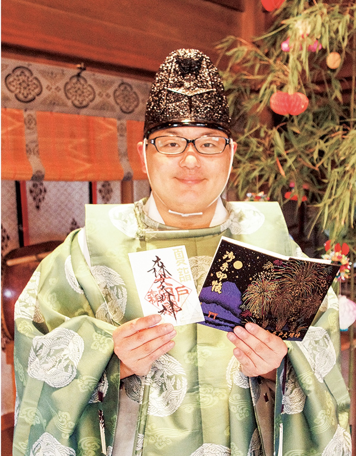 森戸神社では昨年同様、葉山の夜空に大輪の花火が上がる様子を描いた表紙が人気の、オリジナル御朱印帳も数量限定で有料頒布している。夏詣企画に使用することもでき、「密を避けながら、各神社を巡っていただけたら」と守屋さんは呼び掛けている。