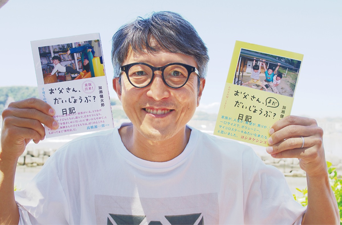 今作は2017年に出版した『おとうさん、だいじょうぶ?日記』の続編。「仕事がなくなって暇だったので、ブログを書き始めたのがきっかけ。お世話になっていた出版社の社長からの温情もあって出版にこぎつけた」と飄々と語る加瀬さん。少し頼りない父と愉快な家族たちの物語はたちまち反響を呼び、第2作では4男が生まれて6人家族になった。妻と0〜10歳の4人の息子たちが繰り広げるドタバタでかけがえのない日々。商店街や公園、浜辺など、逗子葉山の見慣れた風景をバックにした飾らない日常が、「普通の生活の尊さ」を伝える。