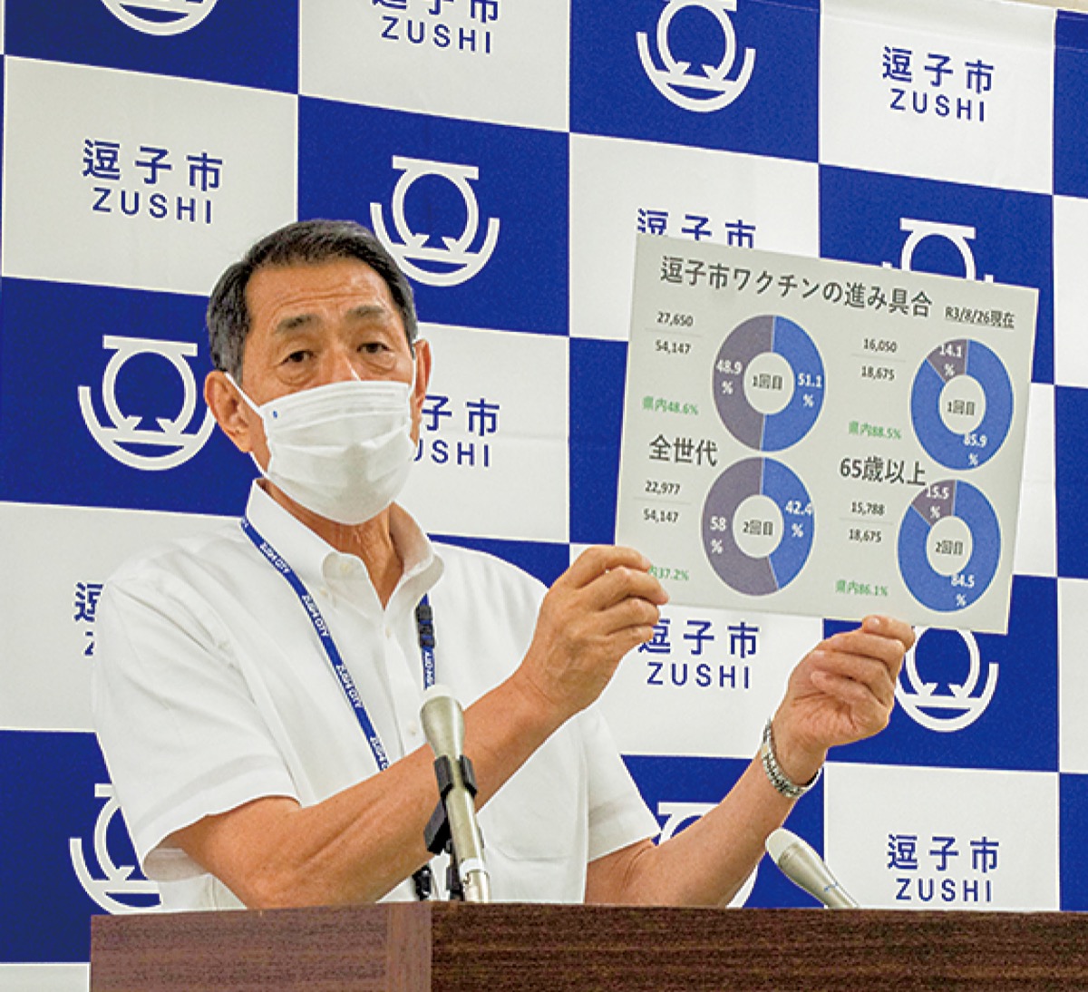 逗子市の桐ケ谷市長は8月30日、定例記者会見で、妊婦やそのパートナーに対し、新型コロナワクチンの優先接種を行うと発表した。日本産婦人科学会等の提言を踏まえたもので、重症化を防ぐ狙い。