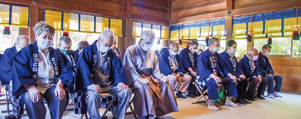 葉山町老人クラブ連合会(山崎時彦会長)が9月20日、葉山町堀内の森戸大明神で「新型コロナウイルス感染症終息祈願」を行った。